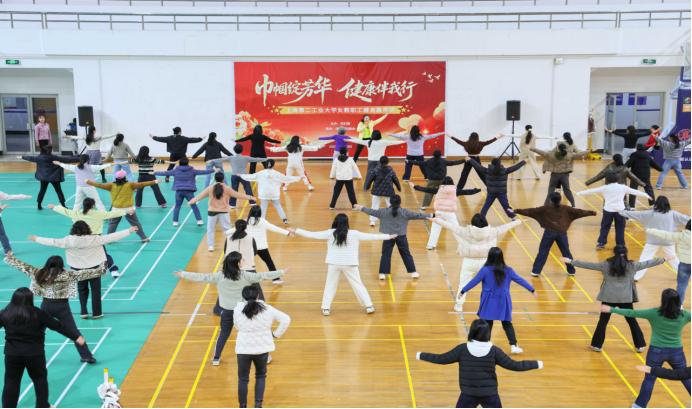 为丰富女教职工业余文化生活,呵护身心健康,营造积极向上的校园氛围,11月19日下午,由校妇委会主办、体育部妇委会承办的 “巾帼绽芳华,健康伴我行”健身嘉年华活动在学校体育馆圆满举办。作为校妇委会“呵护女性健康,赋能幸福工作”女教师健康关爱系列活动之一,本次活动吸引了150余位女教职工踊跃报名参与,在动感节奏中释放压力,绽放巾帼魅力。