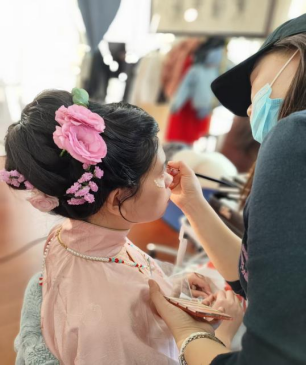 活动现场氛围感拉满,粉色系装饰映衬着节日的温馨。妇委精心筹备专业化妆造型、摄影指导全流程服务,化妆师细致打造精致妆容、设计多样发型,摄影团队耐心引导姿态表情,从干练职业风到温婉中式韵,多角度捕捉女教职工们自信、优雅、专业的多元魅力。大家身着精心搭配的服装,在镜头前绽放最美笑容,定格下独属于自己的职场高光时刻。